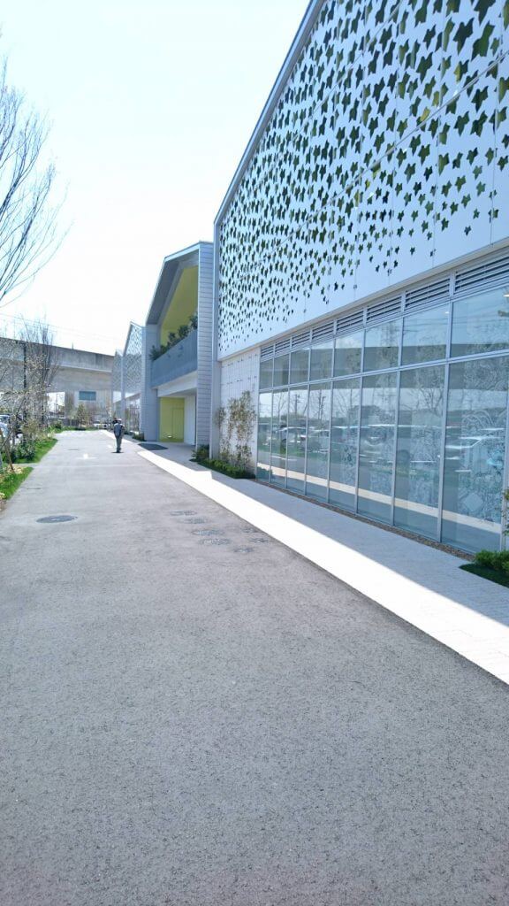 白い建物に緑があっての低層の2階建て。