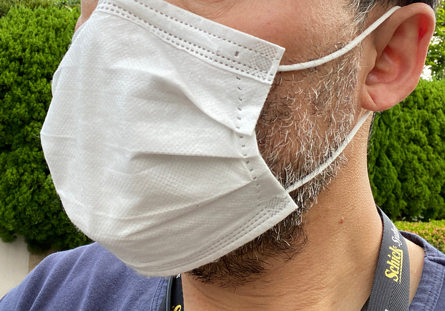マスクにガッツリとヒゲが刺さっております