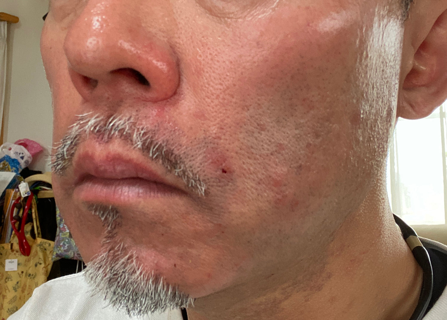 ご覧の通りヒゲと一緒に皮膚が持ち上がっている感じがします