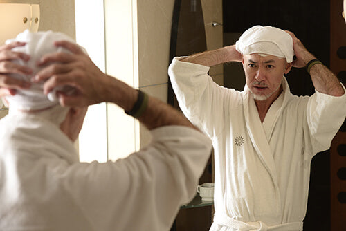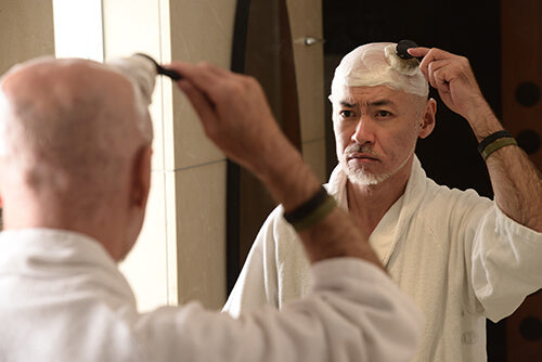 しかし、我々日本人のように黄色肌に黒髪の場合は、毛髪か抜け落ちた箇所とそうでない箇所との差が目立ってしまいます。そこで残った髪を剃りあげることが必要になります。