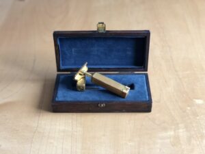 その後1847年、イギリスのロンドンで、ウィリアム・S・ヘンソンという人が、レザーを短くした刃を金具でおおって柄に直角に取り付けた、現在の安全カミソリのスタイルに近い、「T型」のカミソリを発明し、特許を取っています。 しかしこの「T型」カミソリは、刃がまだ高価で替刃を使うことはできなかったので、刃ははずして研がなければなりませんでした。しかも、研ぐときには技術を要したので、 わざわざ理髪店や刃物屋に出さなければならない面倒がありました。